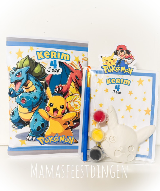 Zakje lays chips ( mix) en een gipsfiguurtje verf en penseetjte in feestelijke gepersonaliseerde verpakking