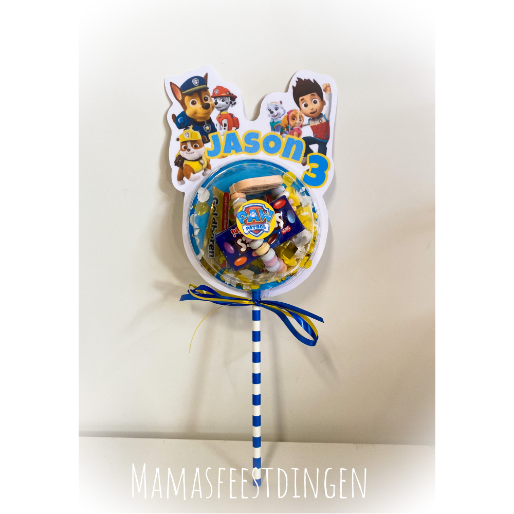 traktatie bol van ongeveer 25 cm hoog gepersonaliseerd met naam en leeftijd van de jarige.