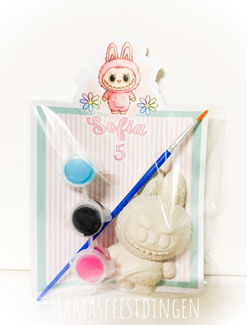 Gispfiguurtje en 3 potjes verf met penseeltje in feestelijke gepersonaliseerde verpakking